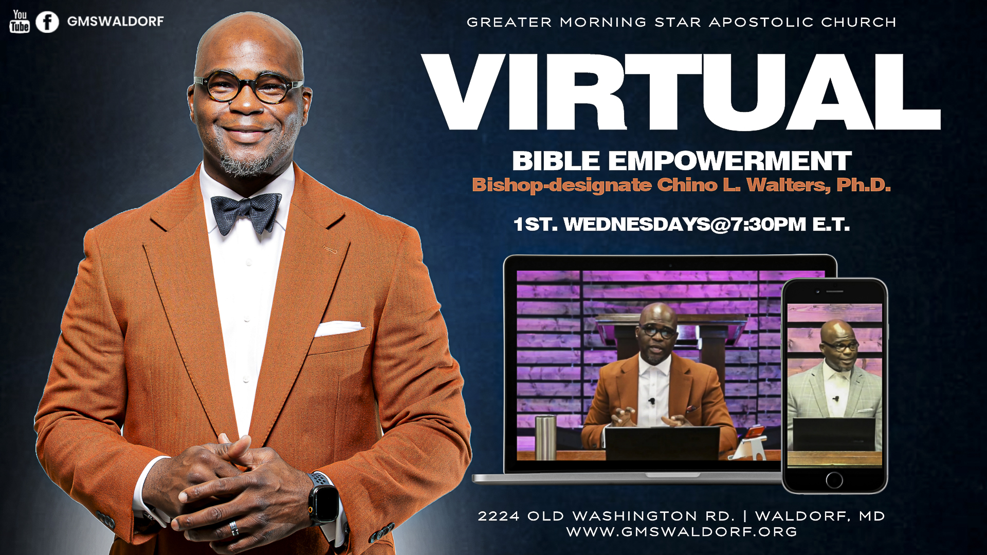 Join Dr. Walters virtually every 1st Wednesday for Bible Empowerment on our social media platforms: Facebook and YouTube: @gmswaldorf
